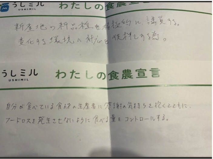 - 自分が食べている食材の生産者に感謝の気持ちを抱くとともにフードロスを発生させないように食べる量をコントロールする